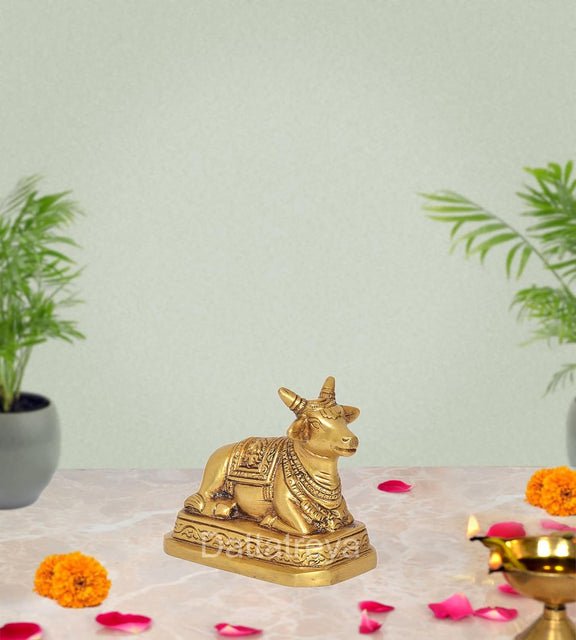 Brass Shiva Seated Nandi Statue Nandi Bull for Shiv Temple Showpiece Home Pooja (Height: 3 Inch)