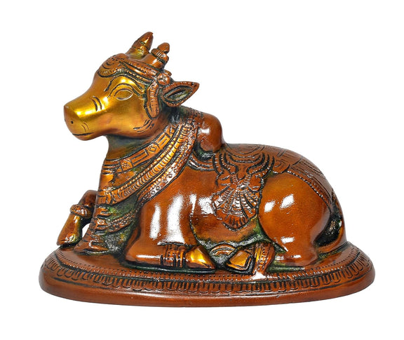 Brass Shiva Seated Nandi Statue Nandi Bull for Shiv Temple Showpiece Home Pooja (Height: 4.5 Inch)