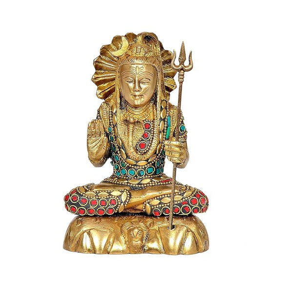 Brass Shiva Statue Idol Murti with Trident for Showpiece | Height : 6 Inches (Multicolor)