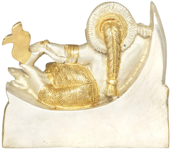Experience peace and serenity with our 4-inch brass silver gold Idol of Ganesha Relaxing on a Crescent Moon. This stunning piece combines exquisite craftsmanship with spiritual significance. Perfect for meditation or as a decorative focal point in your home. Bring good vibes and positive energy into your life.