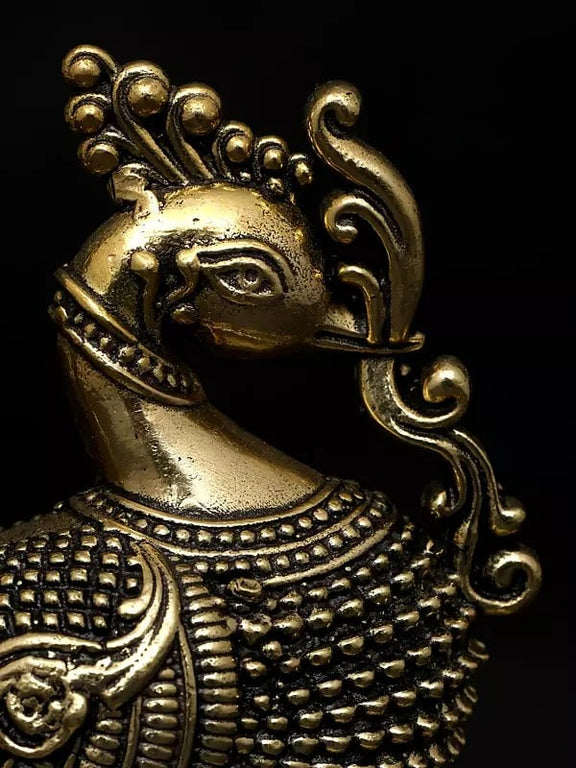 Adorn your sacred space with this exquisite Brass Small Superfine Peacock statue, a symbol of grace and divinity in traditional Indian culture. Meticulously handcrafted by master artisans, this fine brass figurine captures the regal essence of Lord Kartikeya's vahana with intricate detailing. Its auspicious presence invites prosperity and beauty into your home, making it an ideal offering for temples or a treasured decorative piece for your puja room.