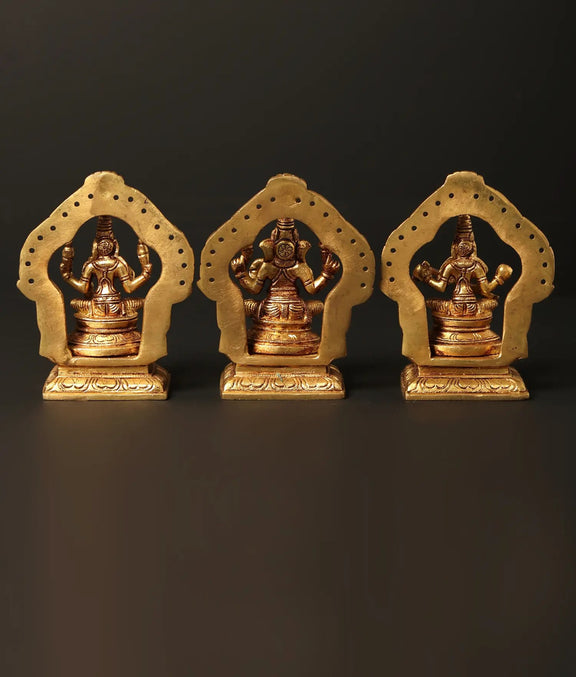 Brass Small trio of Lakshmi, Ganesha, and Saraswati (Height: 5 inches)