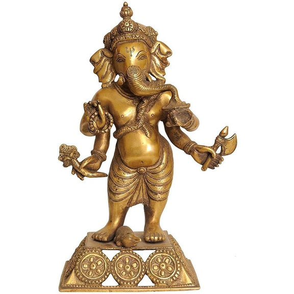 Elevate your home decor with our exquisitely crafted Brass Standing Ganesha statue. Standing at a height of 12.5 inches, this piece exudes sophistication and exclusivity. Adorned with intricate details and a luxurious finish, it is sure to add a touch of elegance to any space.