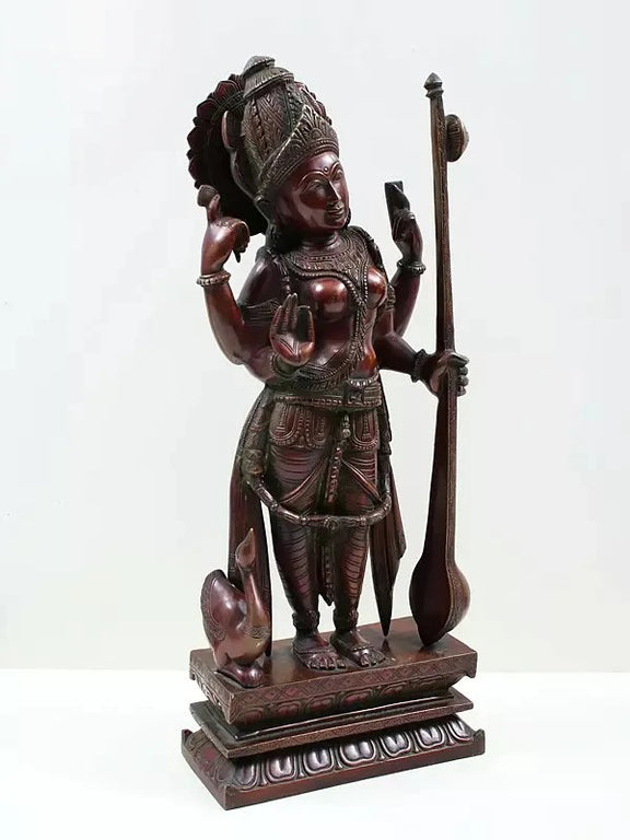 Awaken your creativity and embrace your inner wisdom with our Brass Standing Goddess Saraswati. At 22 inches tall, she is handcrafted with intricate details and adorned with vibrant colors. Let her bring inspiration and knowledge to your space as you meditate upon her divine presence.