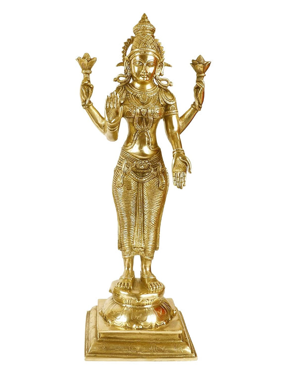 Brass Standing Lakshmi Goddess Laxmi for Home Pooja Home and Office Decor (Height: 20 Inch)