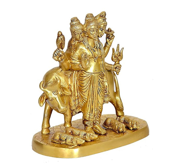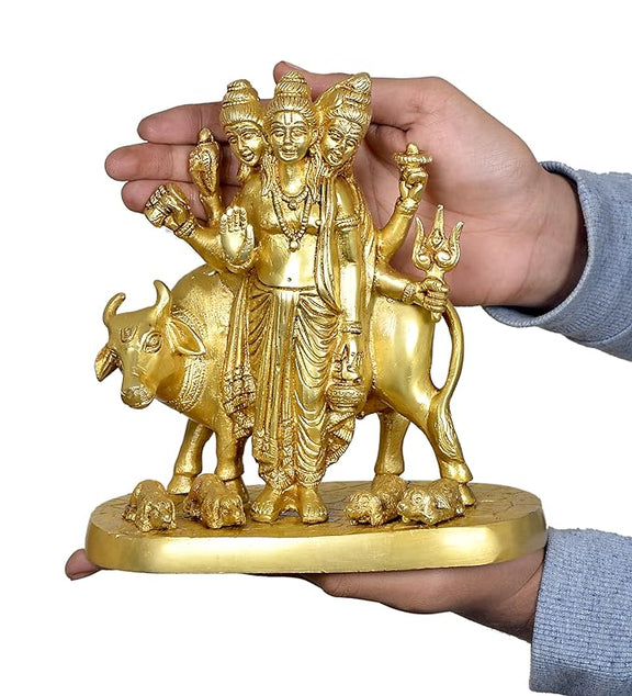 Brass Statue Hindu Trimurti Brahma Vishnu Mahesh Figurine Idol Dattatreya with Auspicious Cow : Lord Shiva Tridev for Home Temple Office Table Shop Height- 8 Inch