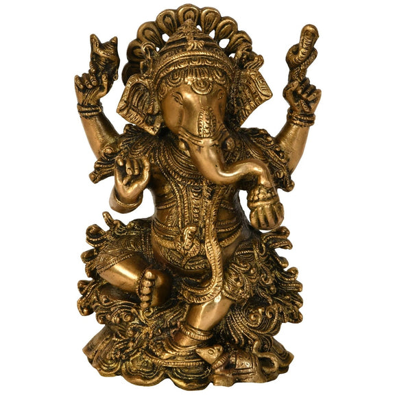 Brass Statue of Ganesha Seated on a Lotus 7 inches