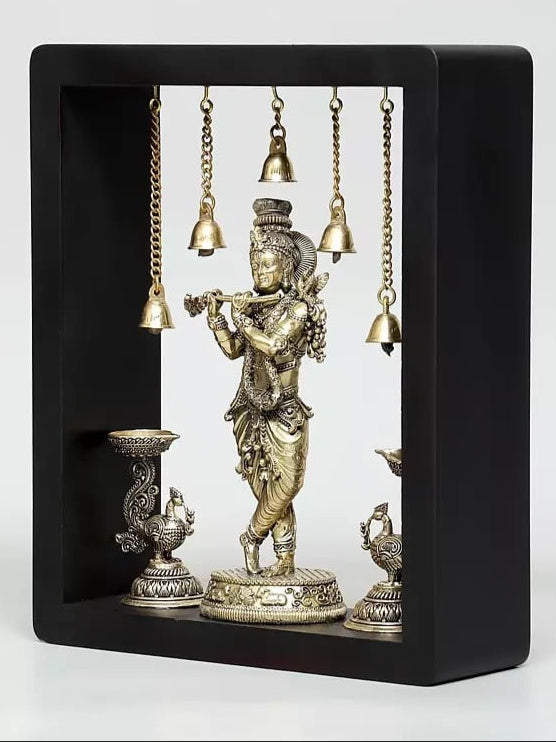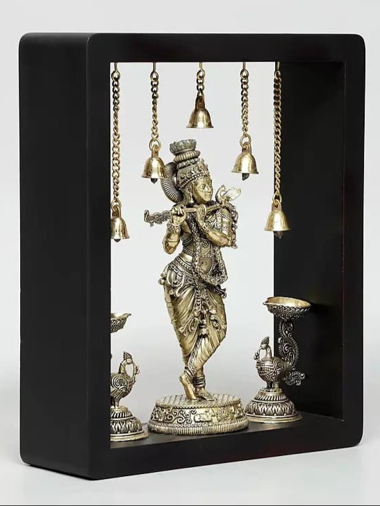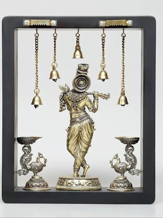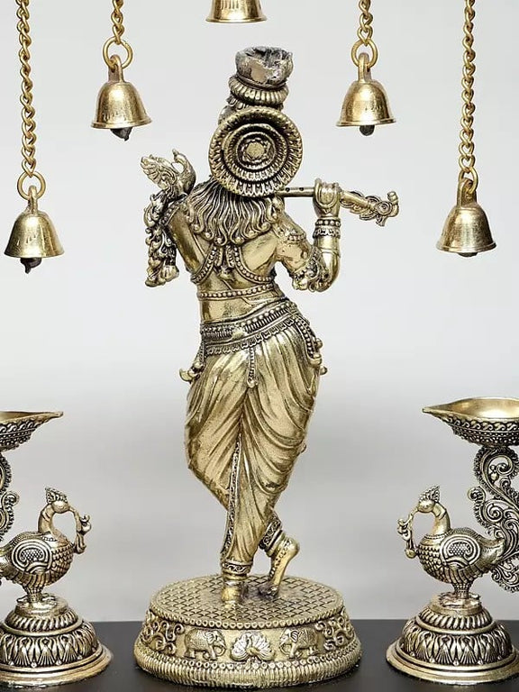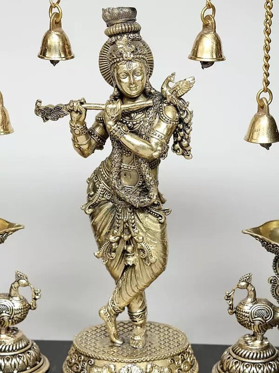 Brass Superfine Lord Krishna with Lamps and Bells Wall hanging (Height :11 Inches)