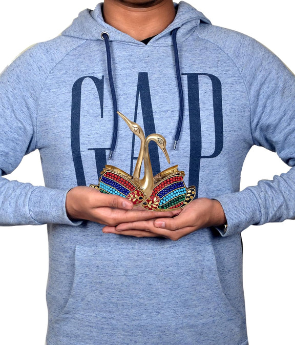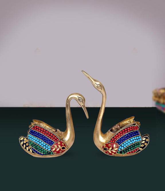 Brass Swan Pair Statue| Tissue holder | paper weight (Height: 7.5 Inches)