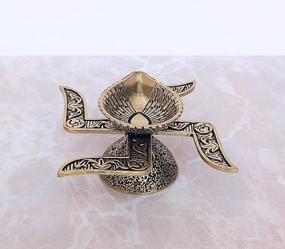 Brass Swastik Diya Oil Lamp with Satya Diya Akhand Diya,for Pooja, Mandir, Festival Tealight Holder for Diwali Decoration Height: 4 inch