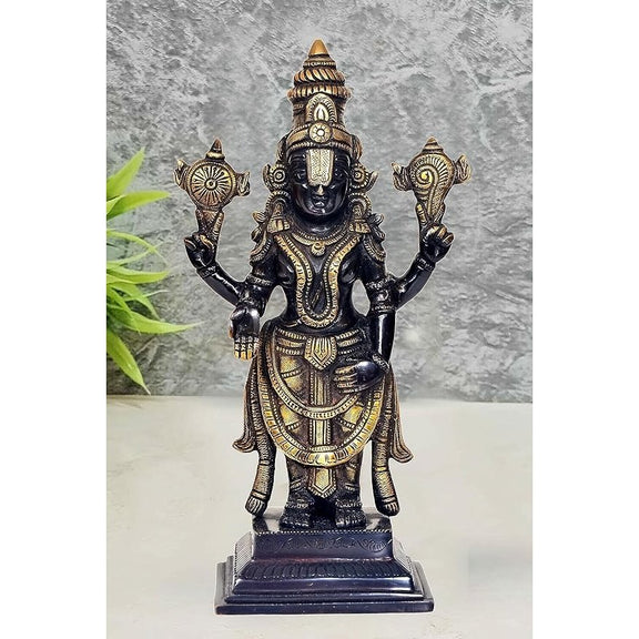 Brass Tirupati Balaji Statue Idol Showpiece for Living Room Home Decor | Height : 11 Inches