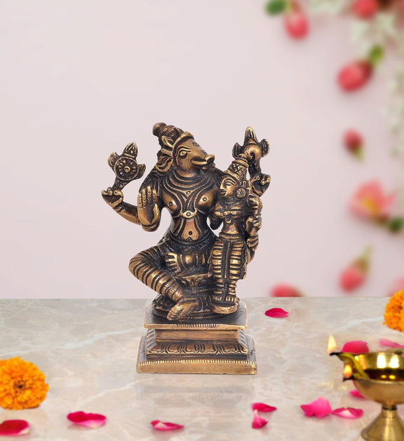 Brass Varaga Lakshmi Varaha Carrying Bhudevi Statue |Avatar of Bhagawan Vishnu| for Home, Mandir Pooja Decor Idol (Height: 4 Inch)