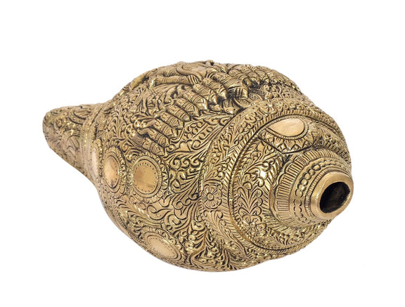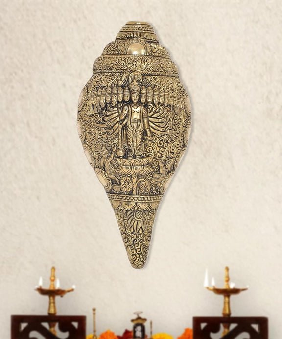 Brass Vishnu Dasavtar Shankh Wall Hanging Shankh Vishnu Dasavtar Design on Shankh Home Decor, Mandir Pooja Temple (Height 9.5 Inch)