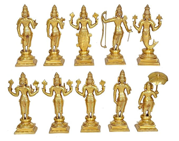 Brass Vishnu Dashavatar Idols (Height : 9 Inches (Each)) | Set of 10