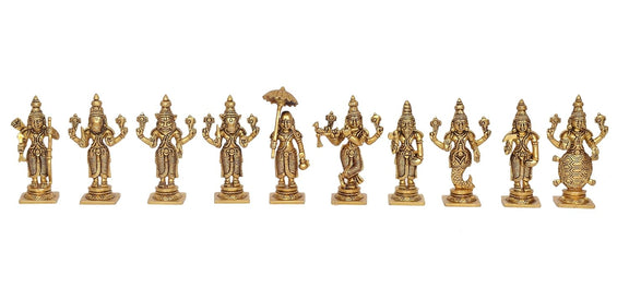 Brass Vishnu Dashavatara Ten Avatars of Vishnu for Home Temple Office Mandir, (Height: 4 Inch)