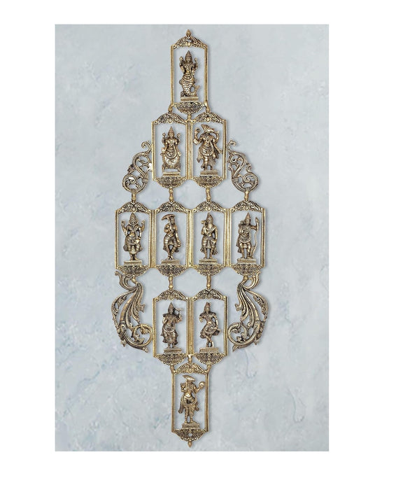 Brass Vishnu Dashavatara Ten Avatars of Vishnu Wall Hangings for Home Temple Office Mandir, (Height: 29 Inch)