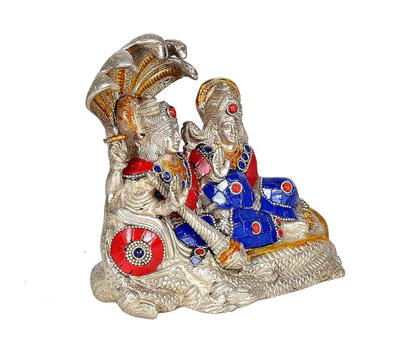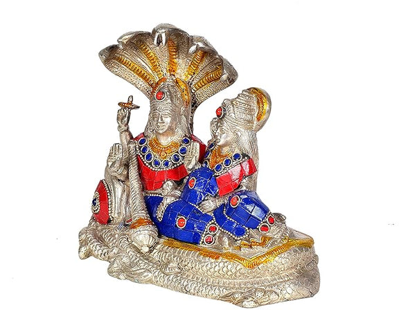 Brass Vishnu Lakshmi Sitting on SheshNaag Idol (Height: 6.4 Inches)