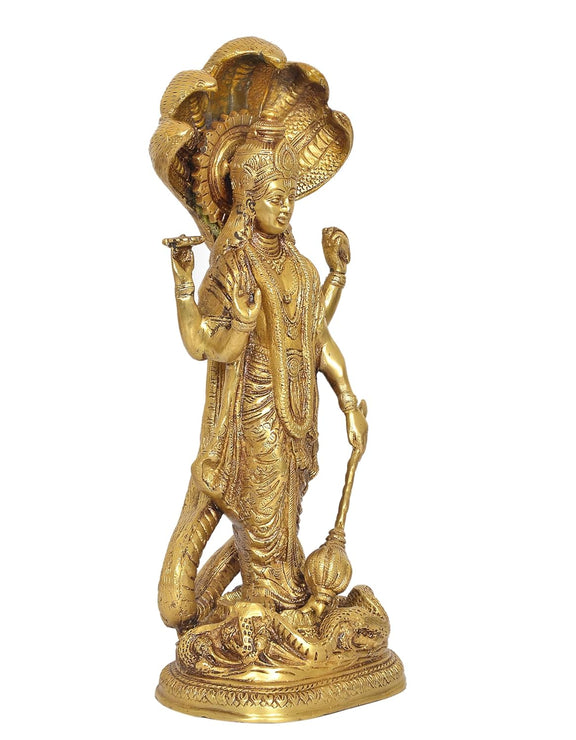 Brass Vishnu Standing Idol with Sheshanaag Vishnu Statue,for Home Decor and Pooja Mandir Temple (Height 17 Inch)