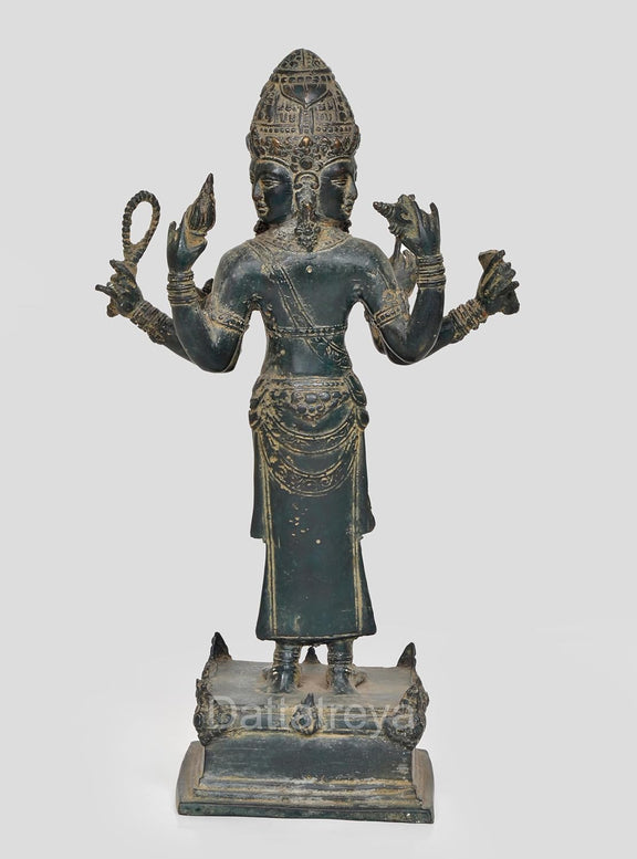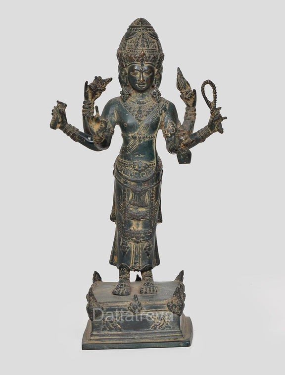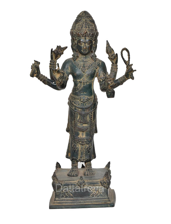 Brass Vishnu Trimurti Four Armed Standing Vishnu Statue, for Home Decor (Height 13 Inch)