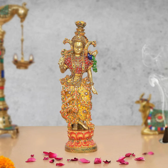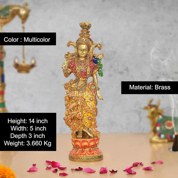 Celebrate devotion with this 14-inch Brass Radha Rani Murti, beautifully crafted to bring warmth and spiritual grace to your home. Its intricate detailing captures Radha’s divine elegance, making it a perfect centerpiece for prayer or meditation spaces. This murti inspires love and tranquility, inviting positive energy and heartfelt blessings into your surroundings.