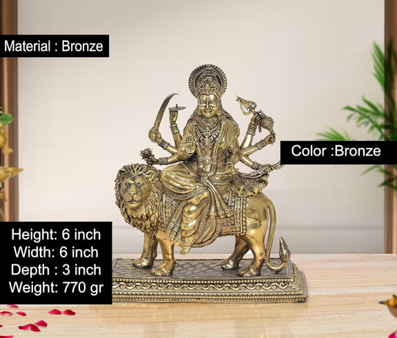Celebrate devotion with this 6-inch Bronze Durga Maa Statue, crafted to inspire love and reverence. Its detailed design captures the divine strength and grace of Durga Maa, making it a perfect addition to your sacred space. This statue serves as a beautiful reminder of protection and courage, bringing warmth and spiritual comfort to your home.
