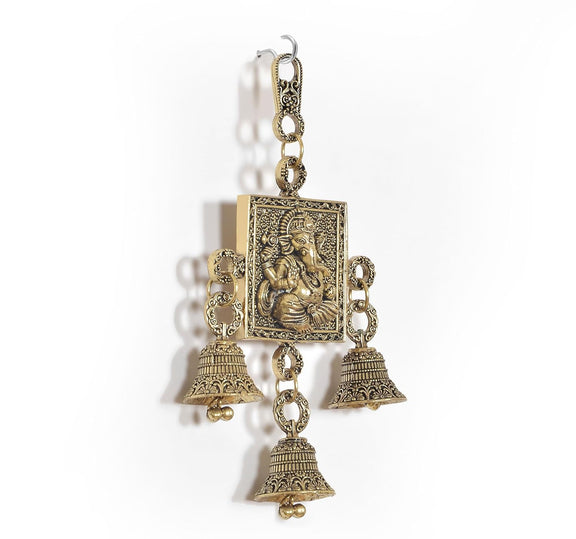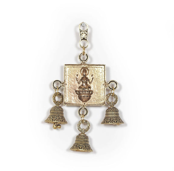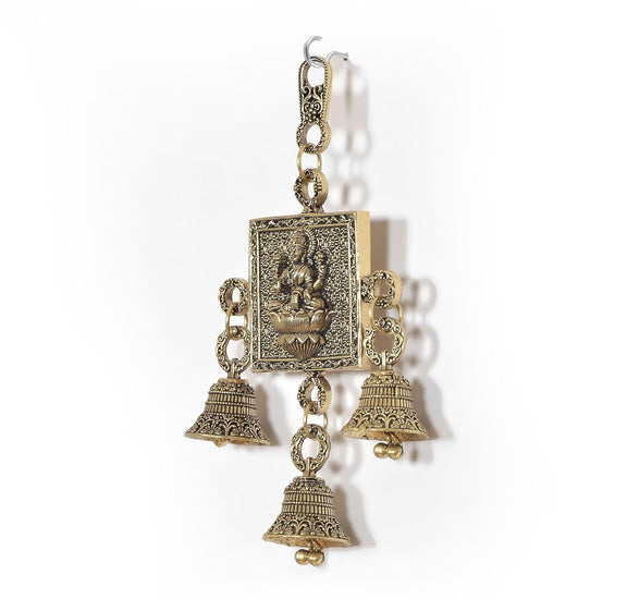 Superfine Brass Lakshmi Ganesh Wall Hanging with Bells (Height: 6.5 Inch)