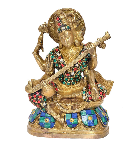 Maa Saraswati Statue - Handcrafted Hindu Goddess Saraswati Idol for Home Decor and Pooja (Height 8 Inch) (MULTICOLOUR)