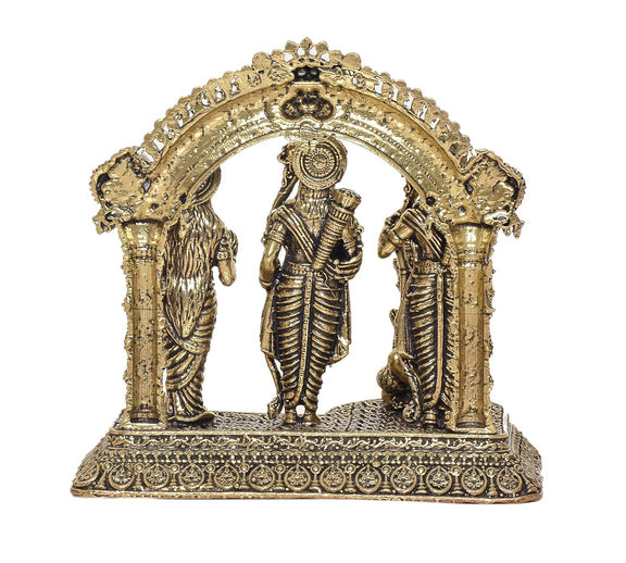 Transform your home into a sacred space with our intricately detailed Bronze Ram Darbar statue. With a bronze finish and a height of 4 inches, it features Sita, Lakshman, and Hanuman on a beautifully carved frame adorned with a Kirtimukha. Perfect for home decor or as a centerpiece for your pooja mandir