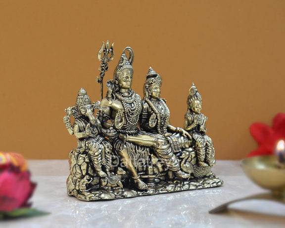 Bronze Shiv Parivar Shiva Family Idol Family for Home Decor Mandir Pooja Showpiece (Height 4.5 Inch)