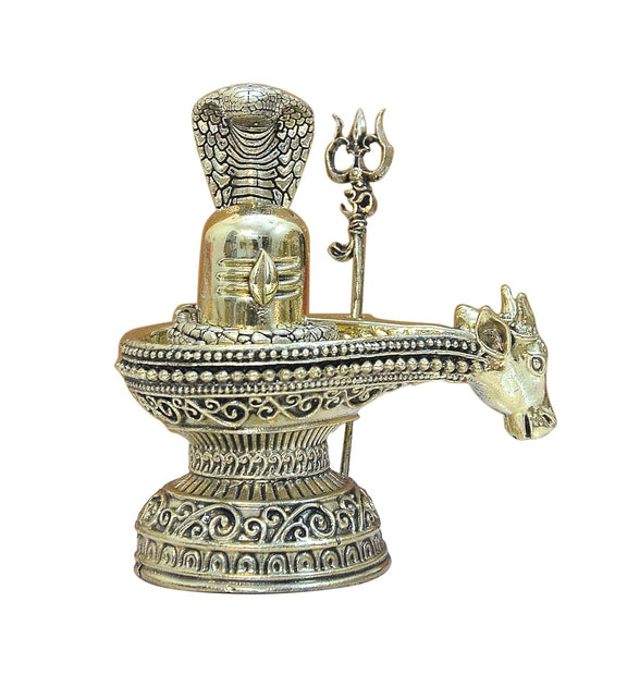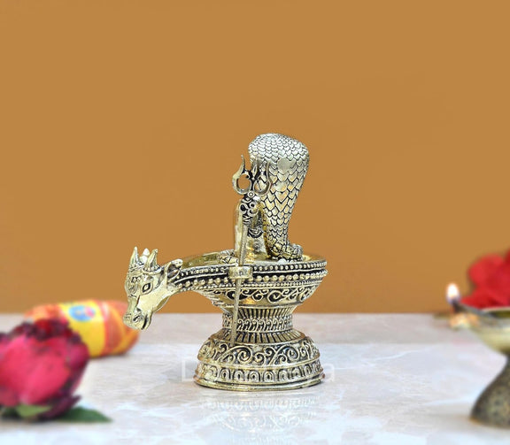 Bronze Shivling with Naag and Nandi Figurine Prefect for Home Mandir (Height: 4 inch)