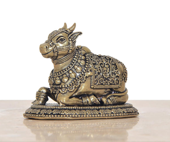 Bronze Nandi Statue for home temple (Height: 2 Inch)