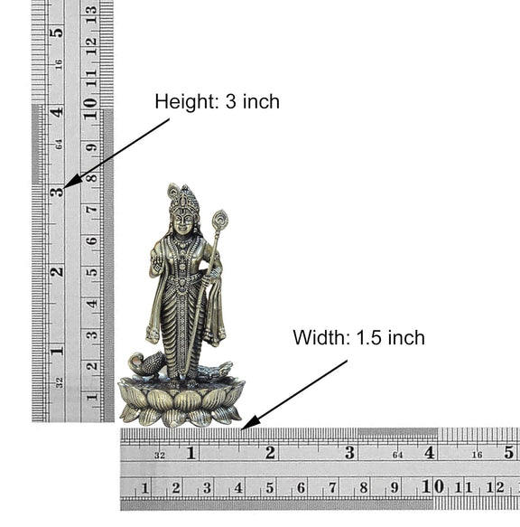 Introducing our Bronze Standing Lord Kartikeya Murugan Murti for your home decor and pooja mandir! This decorative showpiece is made of bronze and stands at a height of 3 inches. With intricate details and craftsmanship, it's the perfect addition to any sacred space