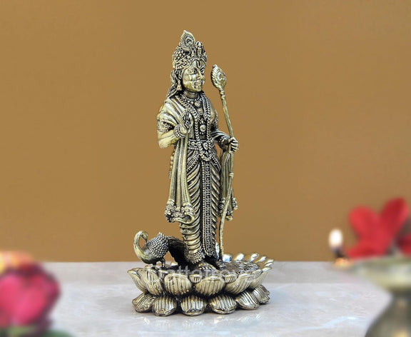Bronze Standing Lord Kartikeya Murugan Murti for Home Decor Pooja Mandir Decorative Showpiece Bronze Murti (Height 6 Inch)