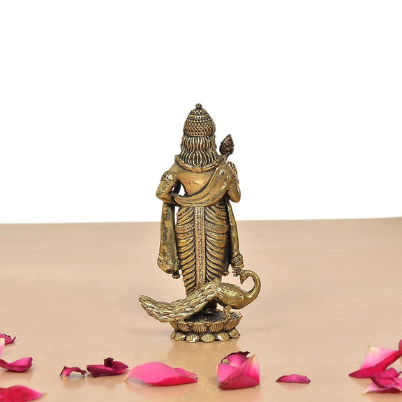 Bronze Standing Lord Kartikeya with Peacock Murugan Murti (Height 4.5 Inch)