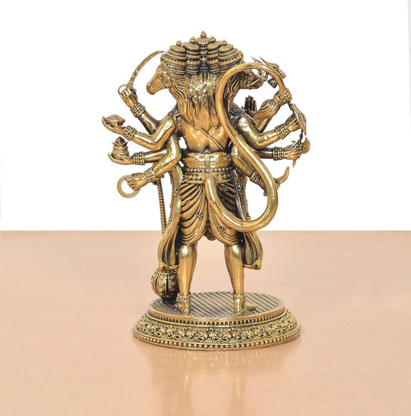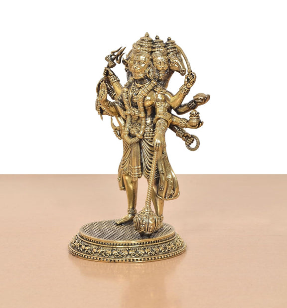 Brass Standing Panchamukhi Hanuman Idol (Height 6.5 Inch)