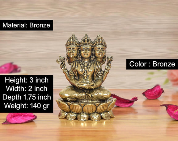 Bronze Trimurti Brahma Vishnu Mahesh Idol (Height 2 Inch)