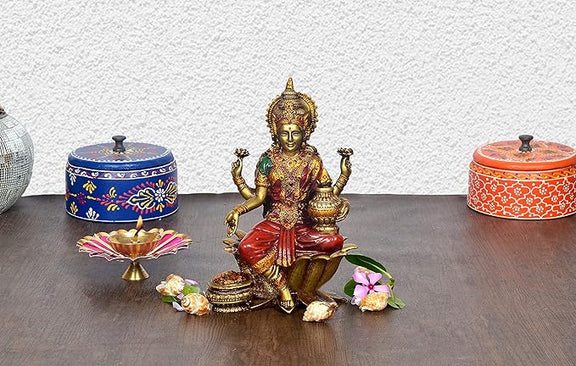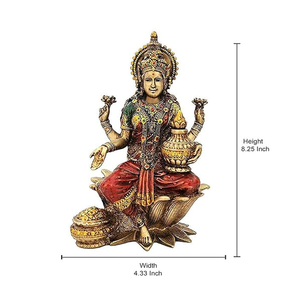 Cold Cast Handcrafted Lord Lakshmi Murti Sitting On Lotus in Resin, Height : 7 inch