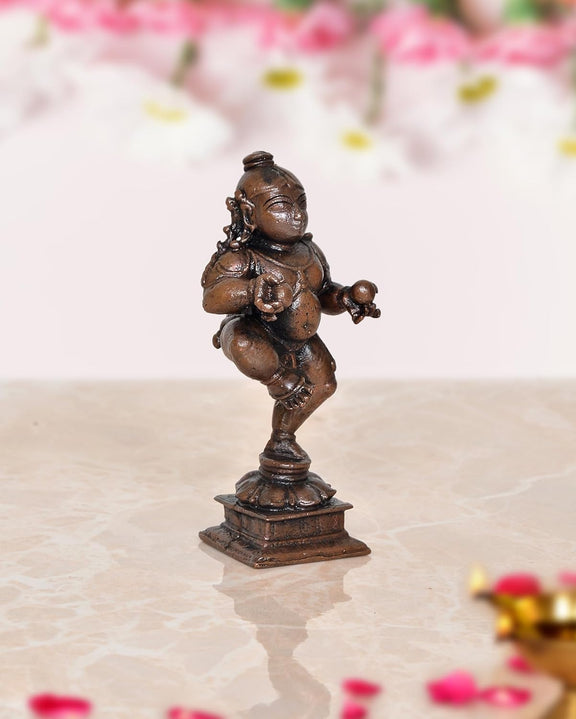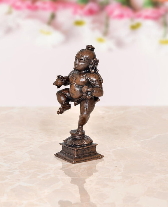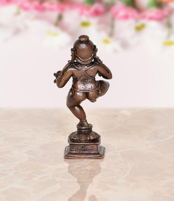 Copper Dancing Bal Krishna with Laddu Statue (Height 3.5 Inch)