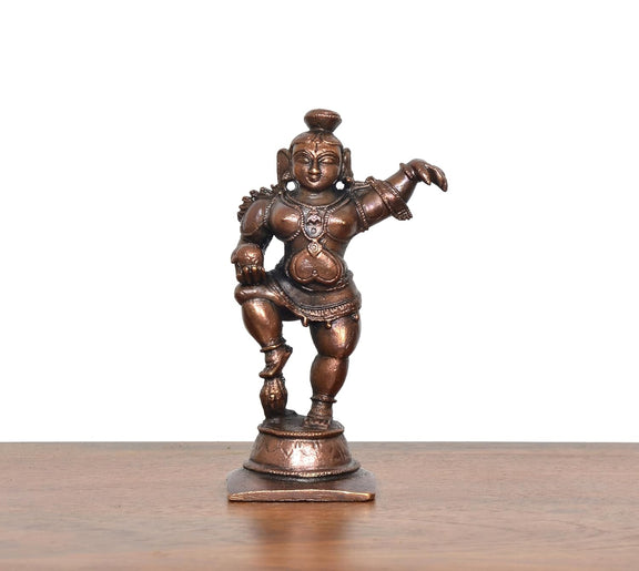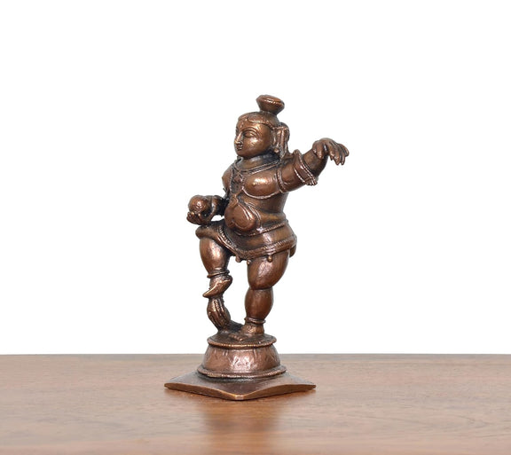 Copper Dancing Bal Krishna with Laddu Showpiece (Height 4 Inch)