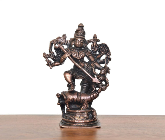 Copper Goddess Mahishasura Mardini Devi Murti (Height : 5 inch)