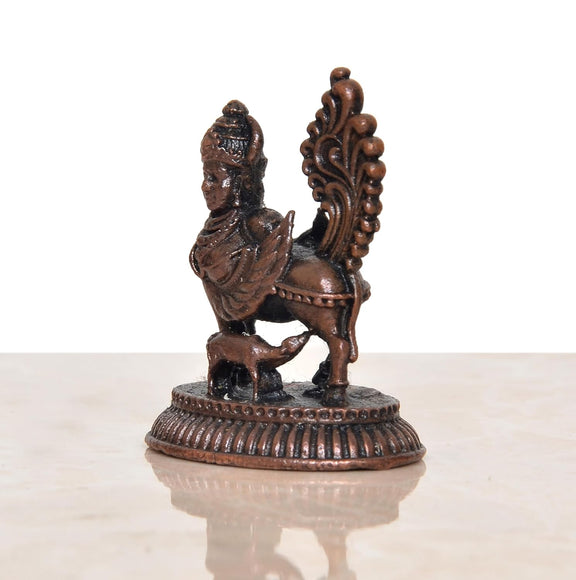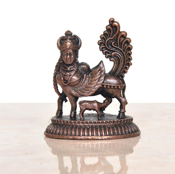 Copper Kamadhenu Cow with Wings detailed work Statue (Height 1.5 Inch)