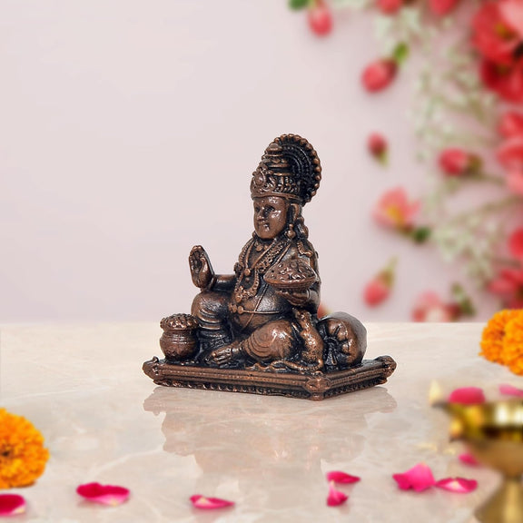 Unleash abundance and prosperity with the Copper Kuber Idol Statue! Standing at 2 inches, this divine statue depicts the Lord of Wealth and Prosperity, ideal for your home temple and decor. Handcrafted and made with pure copper, this idol harnesses the positive energy of wealth and good fortune
