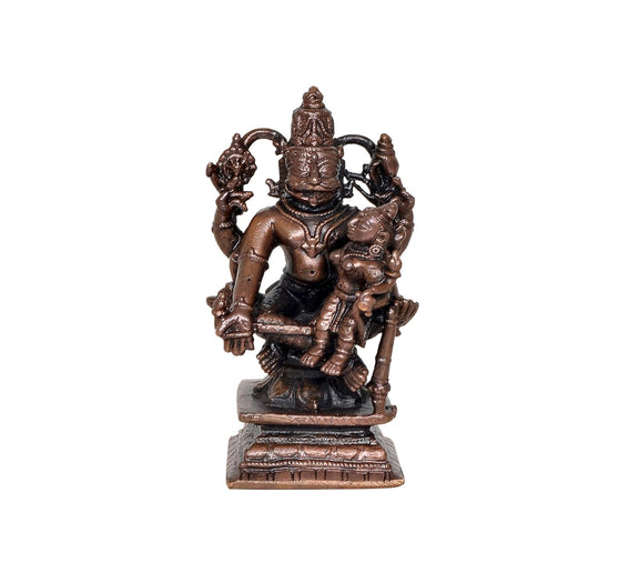 Copper Lakshmi Narasimha Statue for Home Temple Office Mandir, (Height: 3 Inch)