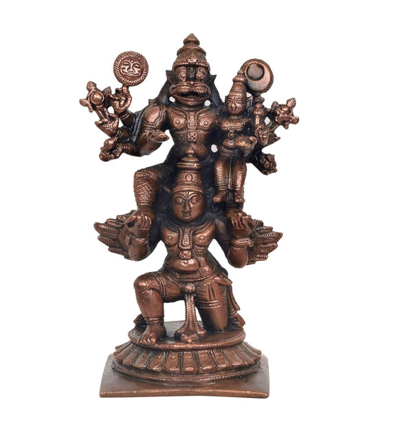 Copper Laxmi Narasimha Swamy on Garuda Idol (Height: 5 Inch)