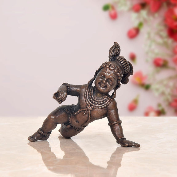 Copper Lord Bal Gopal Krishna Laddu Gopal Idol (Height 2.5 Inch)