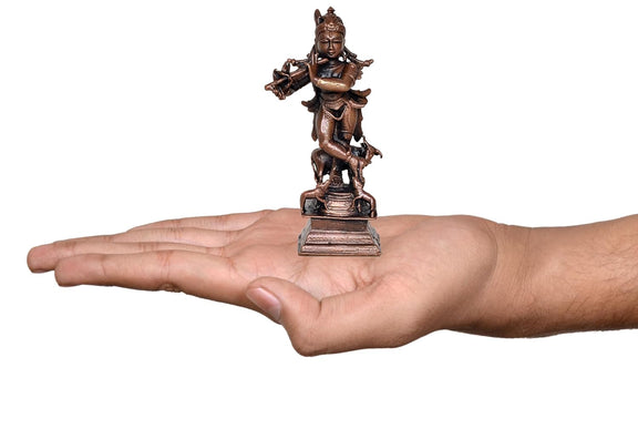 Copper Lord Krishna with Cow Sculpture (Height 4 Inch)