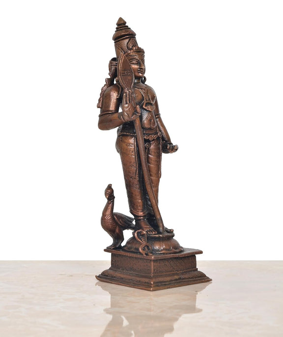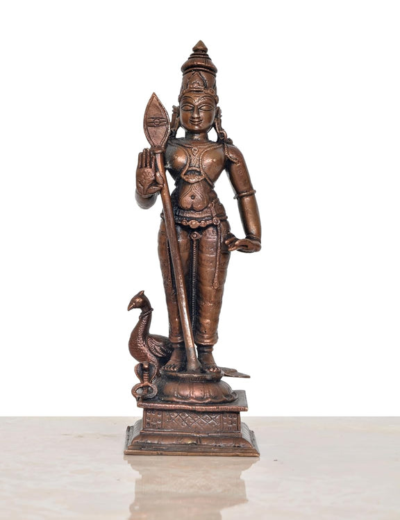 Copper Standing Lord Kartikeya Murugan Murti (Height 6 Inch)
