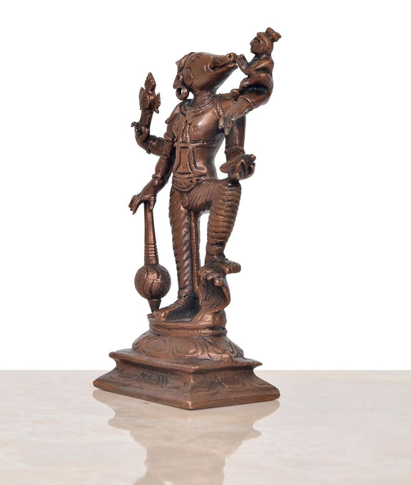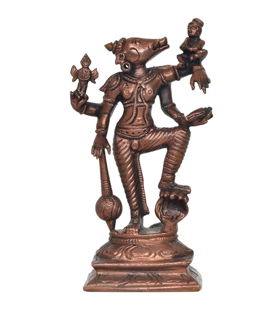 Copper Lakshmi Varaha Carrying Bhudevi Statue (Height: 5.5 Inch)