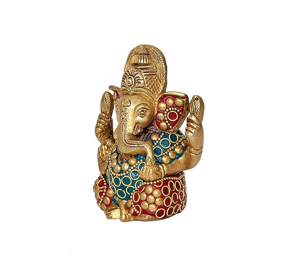 Brass Small Lord Ganesha Religious Statue (Height: 4 Inches)