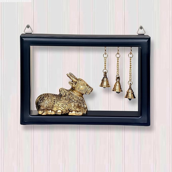 Brass Shiv Nandi Idol Statue Wall Hanging Temple Showpiece Multicolour (Height: 9" Inches)
